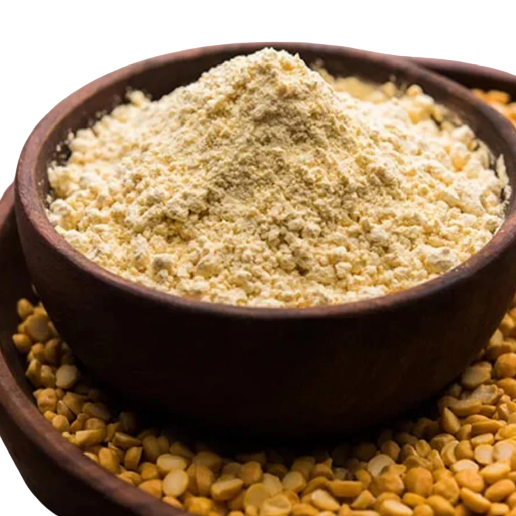 Uptan/Face Mask: Mix Besan with turmeric and yogurt for a traditional face pack that helps exfoliate, remove tan, and brighten the skin naturally.