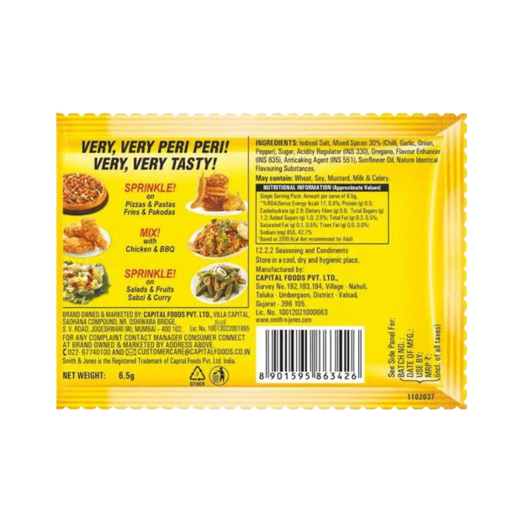 Turn every snack into a fiery explosion of flavor with the Smith & Jones Peri Peri Masala (6.5g). Inspired by the bold, zesty flavors of African Bird’s Eye chilies, this “Very Very Tasty” spice blend is the ultimate flavor enhancer for the modern kitchen. This compact 6.5g sachet is packed with a punchy mix of heat, tang, and aromatics, designed to give your food that addictive “zing” that you usually only find in gourmet burger joints or specialized fries shops.